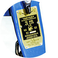 正品3噸飛鴿手扳葫蘆銘牌位于手柄上,它是鋁制的,上面有品牌名稱、公司名稱的中文及英文,飛鴿logo、產品噸位、起升高度等標識,缺一不可。